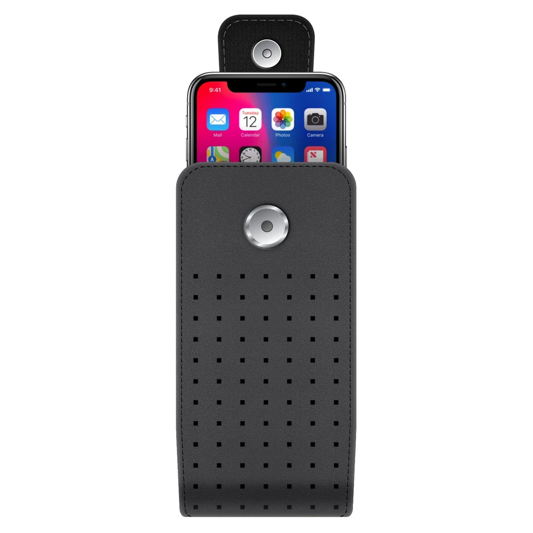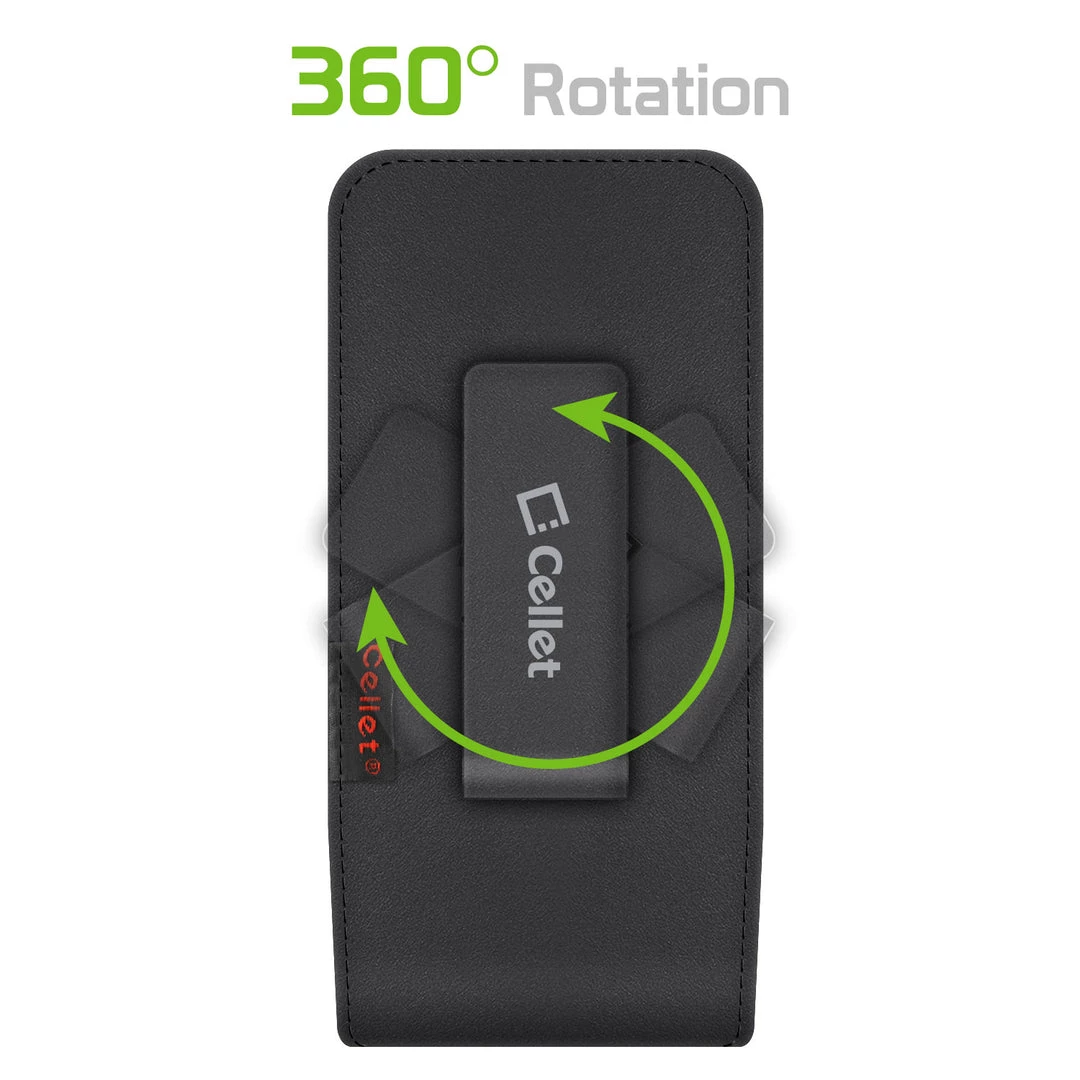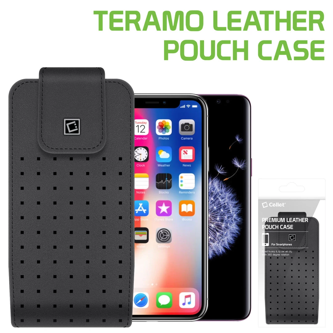 Carry your phone with sophistication with the Cellet Teramo Leather Case. Made to fit the Apple iPhone 13 Pro, 12 Pro, X, 8, 7, 6S, 6, Samsung Galaxy S21, S20, S10, S9 it is made with high-grade classic leather, has a secure magnetic flap and elastic sides to accommodate your smartphone. Attached is a fixed heavy-duty swivel clip with 360-degree rotation that can be positioned to any desired angle. Â