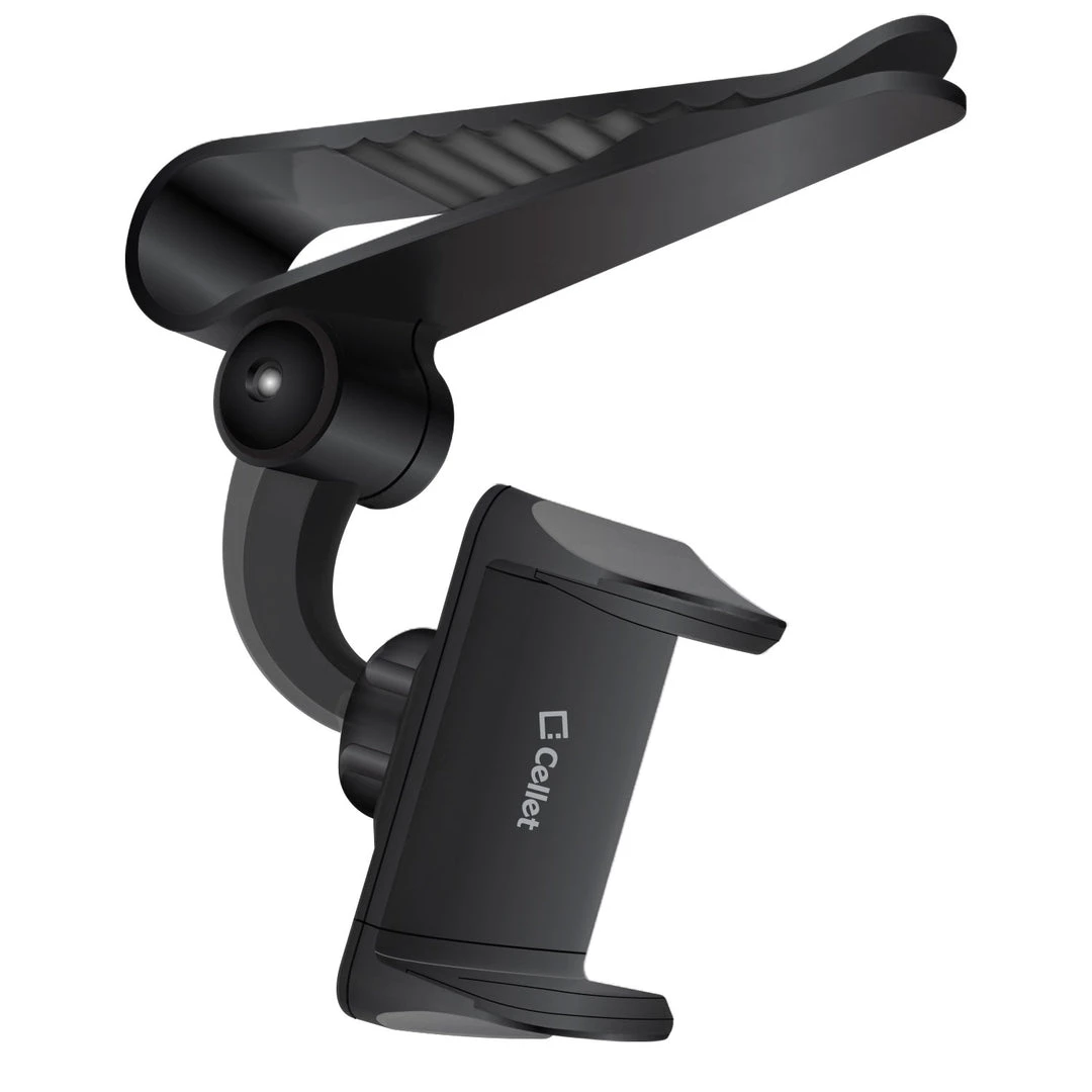 Mount your GPS or smartphone in a convenient place with the Cellet Visor Phone Holder. Keep your device at a safe distance and eye level when driving. Cradle has expanding arms that can accommodate devices up to 4.7 inches in width. No tools required when installed, simply clip onto the sun visor and insert your device. With a 360 degree rotating holder arm, your device can be positioned in any desired orientation, vertical or horizontal. Equipped with non-slip rubberized grips, this mount holds your device secure when driving.