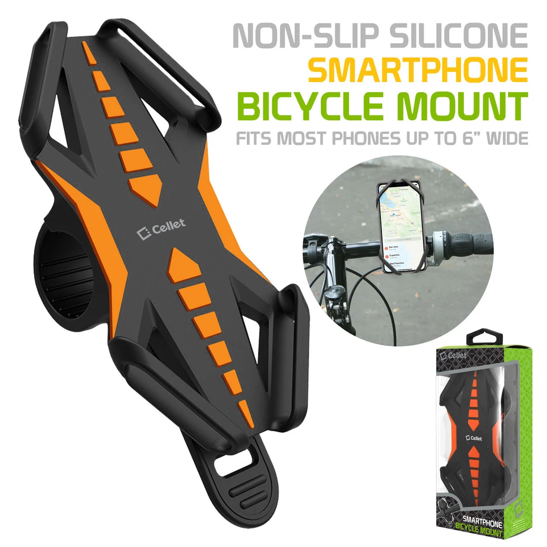 No matter where you are cycling, in the city, or mountain biking, the Cellet Universal Bicycle Holder Mount is the most reliable choice for holding, securing, and protecting your device when cycling. Keep your smartphone mounted in portrait (horizontal) mode while riding your bicycle. The holder is made of silicone and the cradles are made of non-slip rubber grips that can accommodate devices from 4.3 inches to 6 inches. With an attachable strap, it is easy to mount onto the handlebars; no extra tools are required to install.