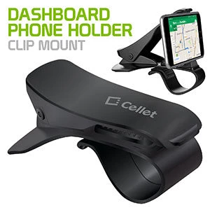 Mount your smartphone securely on your dashboard with the Cellet Smartphone Clip Mount. This phone holder will securely hold your phone with confidence and no difficulties. Rubberized padded protective side grips and anti-slip backing will ensure a firm hold onto your device. The clip phone mount holder allows a clear view of your device in landscape mode. Slip the mount onto your dashboard and this phone mount will hold your phone steady as you drive.