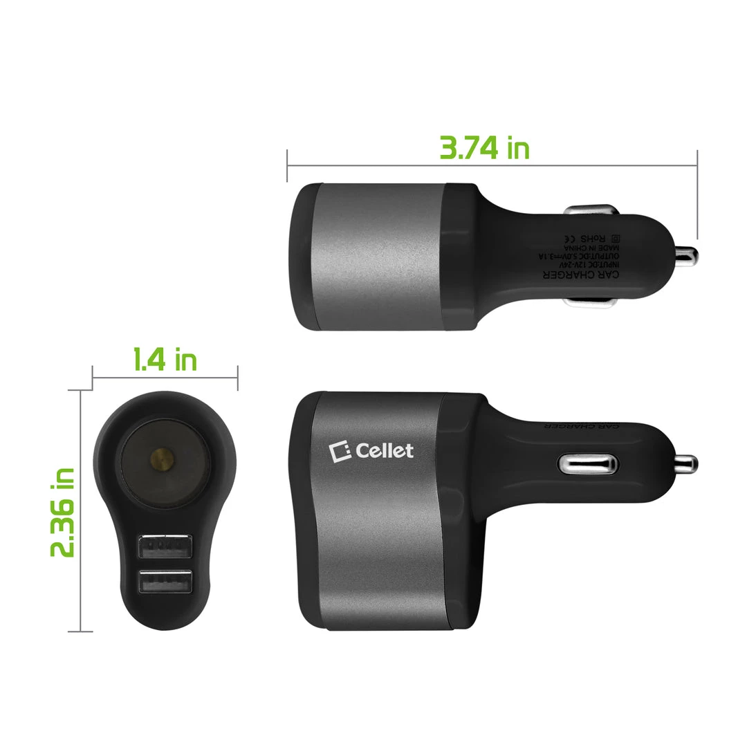 With universal dual USB ports, use existing USB powered cables to charge two devices simultaneously at high speeds. Extra car socket lighter adapter gives you the convenience to power up an additional device with a CLA adapter such as GPS. With built-in smart IC chip technology, it has short circuit/overcharge/over-discharge protection that allows you to charge your tablet or large smartphone safely.