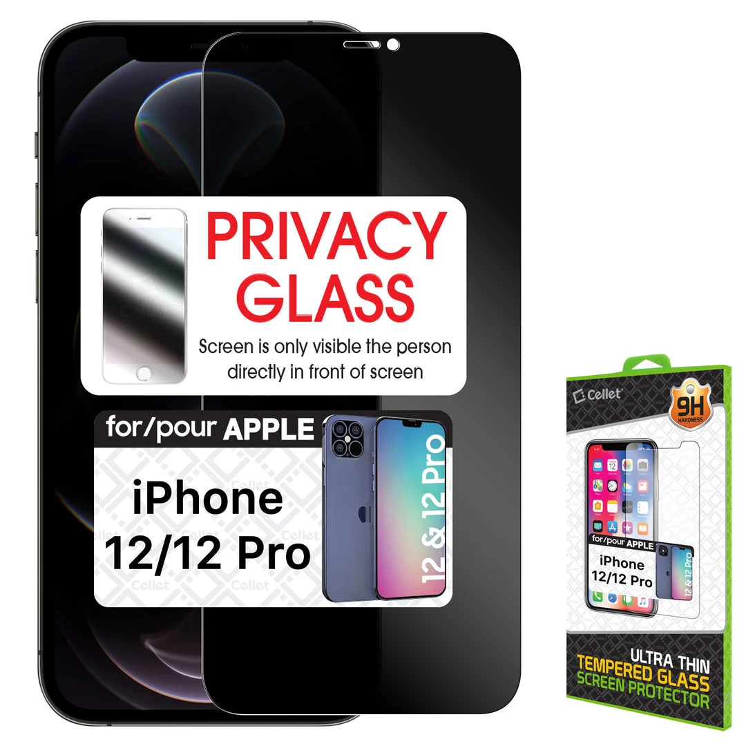 Protect your iPhone 12 / 12 Pro screen from prying eyes with the Cellet Premium Tempered Privacy Glass Screen Protector. Precisely cut for your iPhone 12 / 12 Pro, the screen provides the ultimate protection for your screen without hindering touchscreen capabilities. Each tempered glass screen protector provides 9H hardness strength with minimal thickness, scratch-proof protection, and its oleophobic coating provides resistance against smudges and fingerprints. Featuring a transparent black appearance for extra privacy, the screen can only be viewed at a straight angle and prevents others from looking at your phone. Simple to install, the package includes an alcohol wipe, microfiber cloth, and instructions to assist in the application of the screen.