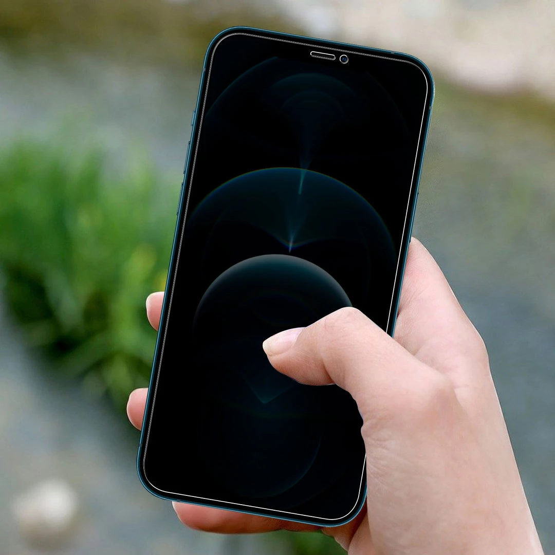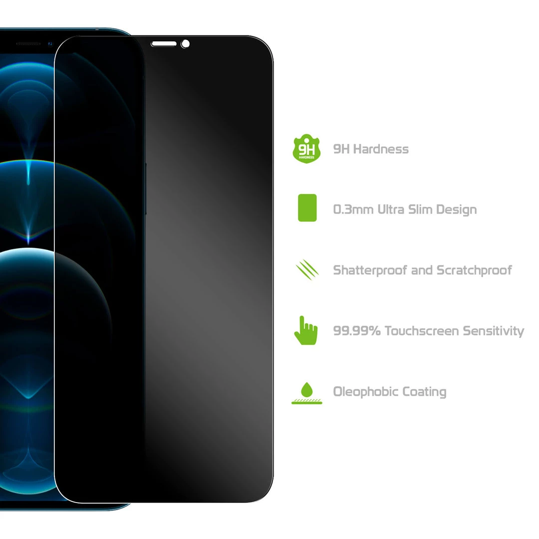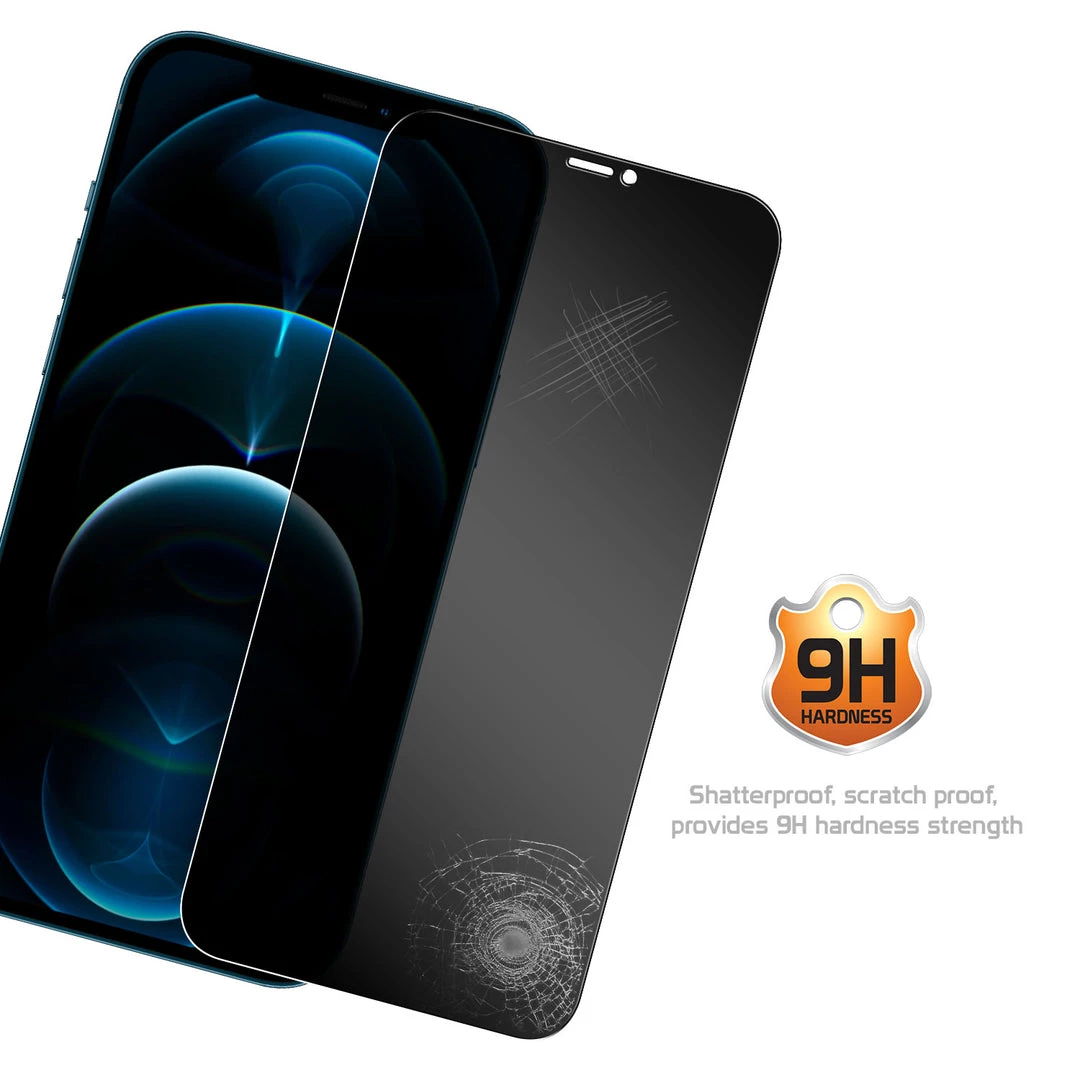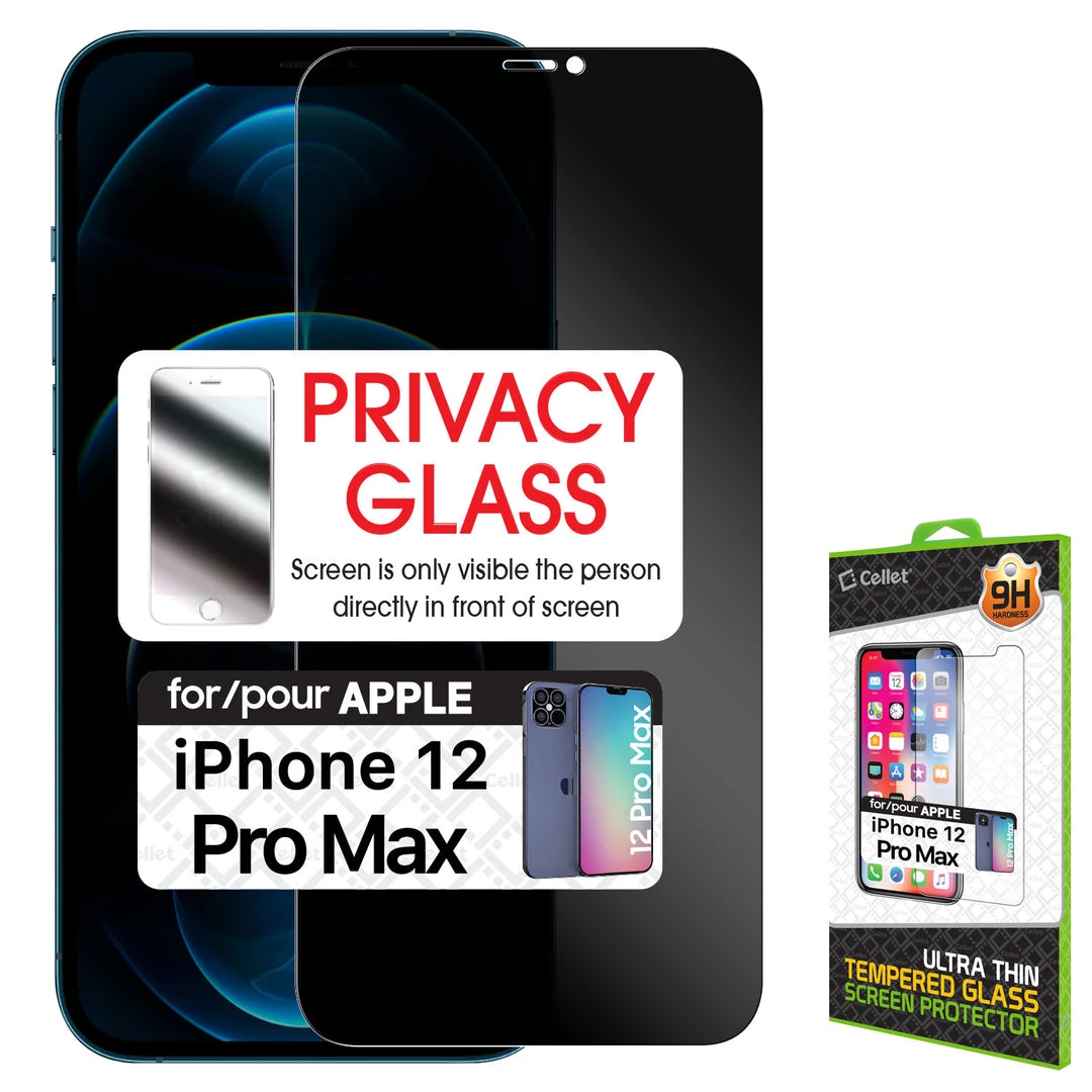 Protect your iPhone 12 Pro Max screen from prying eyes with the Cellet Premium Tempered Privacy Glass Screen Protector. Precisely cut for your iPhone 12 Pro Max, the screen provides the ultimate protection for your screen without hindering touchscreen capabilities. Each tempered glass screen protector provides 9H hardness strength with minimal thickness, scratch-proof protection, and its oleophobic coating provides resistance against smudges and fingerprints. Featuring a transparent black appearance for extra privacy, the screen can only be viewed at a straight angle and prevents others from looking at your phone. Simple to install, the package includes an alcohol wipe, microfiber cloth, and instructions to assist in the application of the screen.