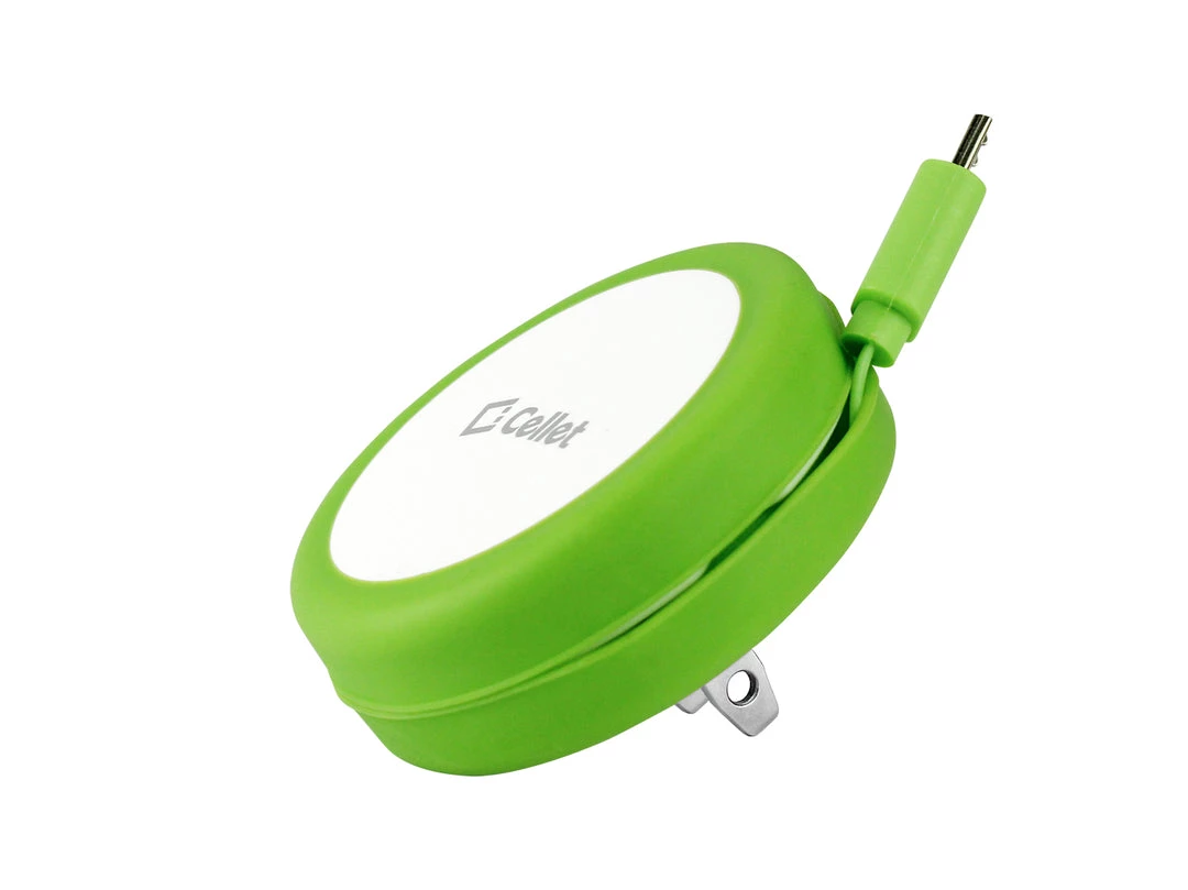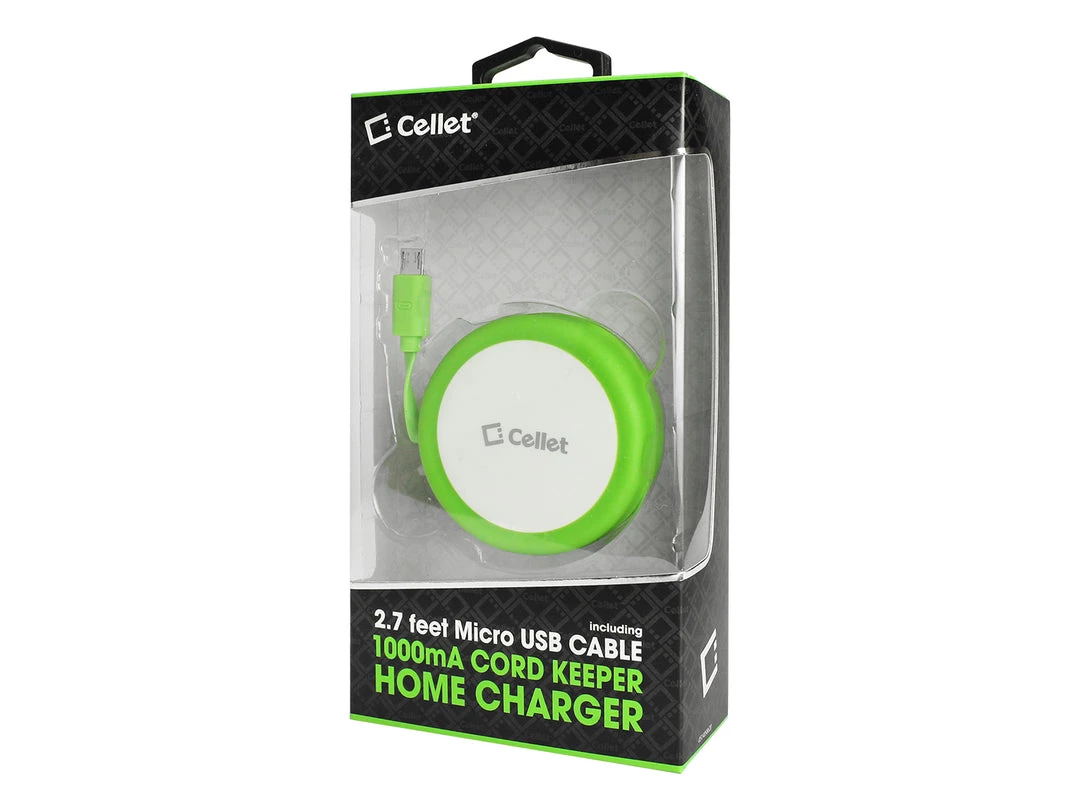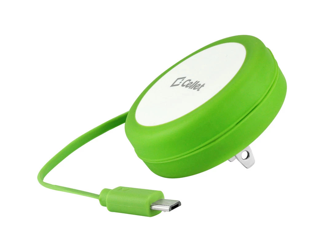 Charge your Android device and store away your cord instantly with the Cellet Cord Keeper Micro USB Charger. Attached is a detachable 2.7 feet micro USB cable that conveniently wraps around the charger itself while charging your device or when not in use. Once the cable is wrapped, simply fold over the rubberized cover so you can store it in your purse or computer bag. Compatible with any micro USB device and other colors are available.